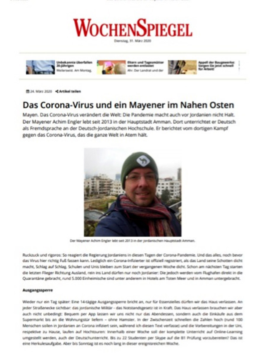 عمون - اعتبر الالماني آخيم انجلر ان الأردن هي البلد الأكثر أمنًا حاليًّا في زمن جائحة فيروس كورونا المستجد...