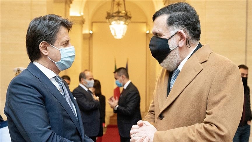 خلال لقاء جمع رئيس الوزراء الإيطالي جوزيبي كونتي مع رئيس المجلس الرئاسي الليبي فائز السراج - وكالة الأناضول