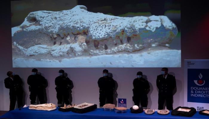 من بين هذه القطع، جمجمة تمساح محفوظة جزئيا في غشائها وأحفوريات وأسنان أسماك وزواحف وألواح حفر عليها يعود بعضها إلى العصر الحجري الحديث.