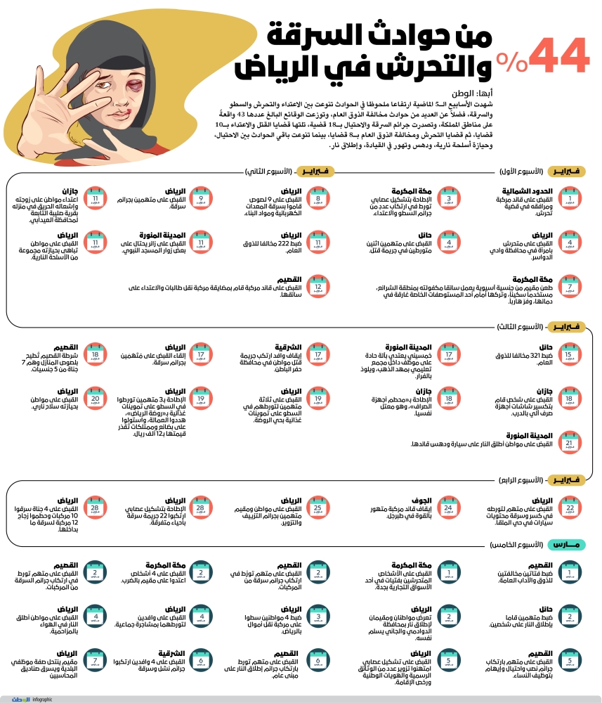 44 % من حوادث السرقة والتحرش في الرياض