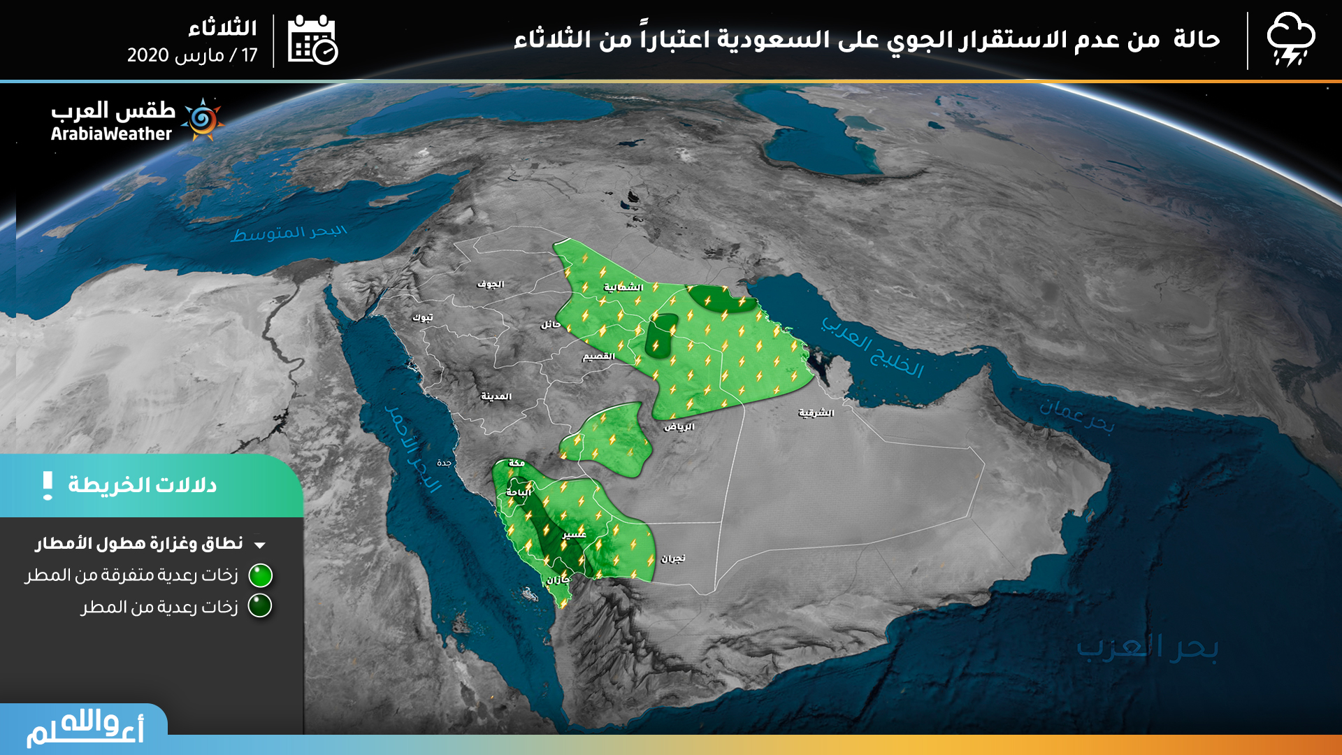 السعودية | حالة من عدم استقرار جوي منتصف الاسبوع تشمل الرياض