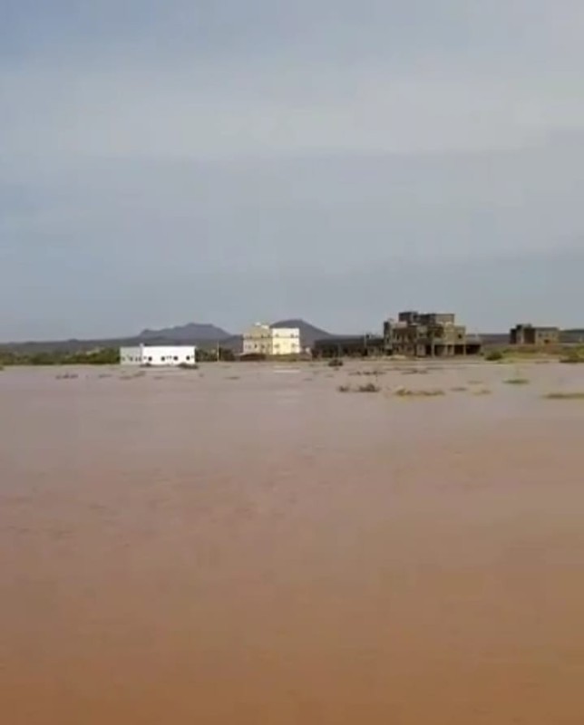 السيول تقطع الطريق في قحمة عسير وتدخل المنازل
