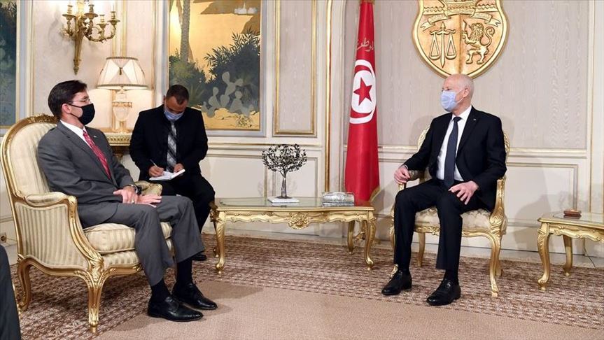 خلال لقاء جمع الرئيس التونسي بوزير الدّفاع الأمريكي مارك إسبر بقصر قرطاج. - وكالة الأناضول