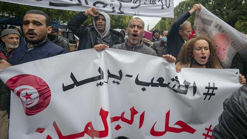 تونس.. وقفة للعشرات تطالب سعيد بالدعوة لاستفتاء لحل البرلمان