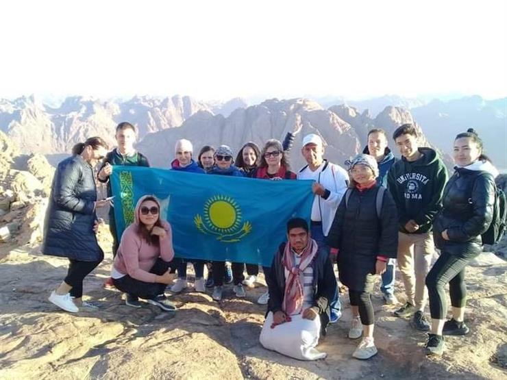 وفد كازاخستاني يشهد شروق الشمس من أعلى قمة جبل موسى