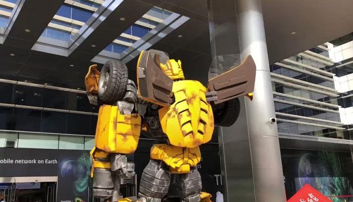 فوجىء زوار معرض جيتكس 2020، بروبوت عملاق يتصدر مدخل المعرض، لاستقبال الزائرين والحديث معهم.