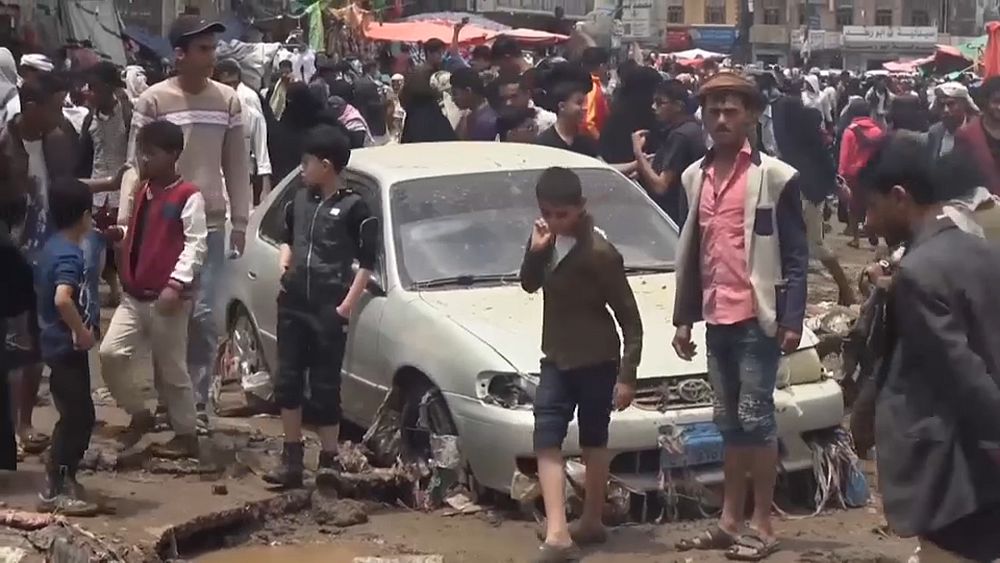 بدأت عملية التنظيف في العاصمة اليمنية صنعاء، التي يسيطر عليها المتمردون، بعد أن غمرت الفيضانات أجزاء من المدينة، مخلفة وراءها أضرارا جسيمة في السيارات والمحلات والدكاكين الصغيرة.